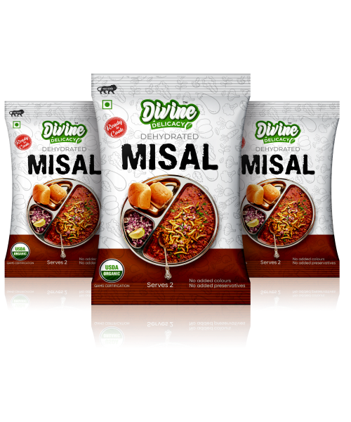 Spicy, flavorful Misal in minutes! Just add water, cook, and enjoy an authentic Maharashtrian delight with pav or rice. Buy Ready to Cook Misal!